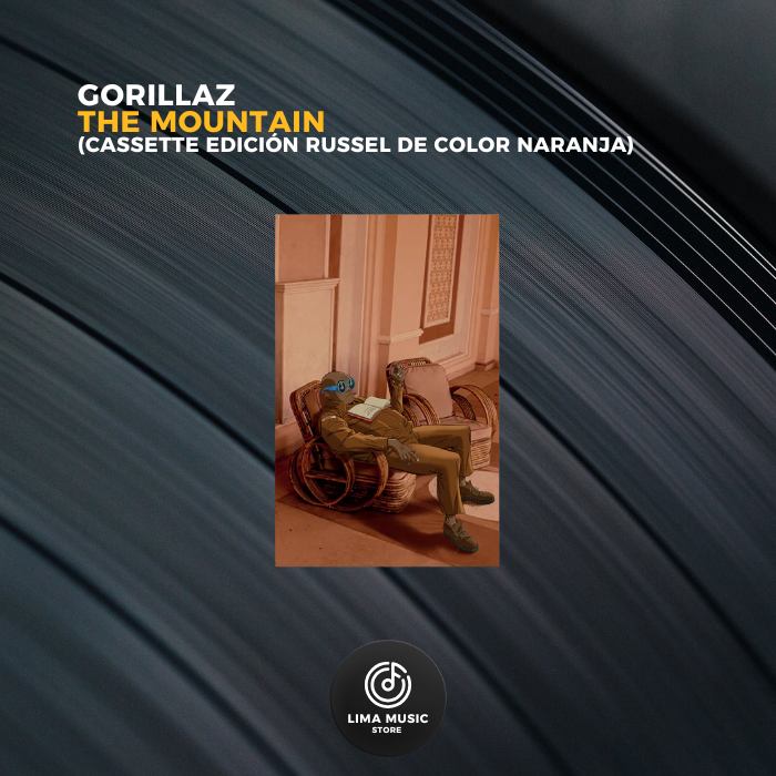 Cassette color naranja de The Mountain edición Russel, con arte exclusivo del personaje y diseño especial dentro del universo visual de Gorillaz.