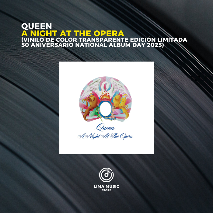 Para celebrar los 50 años de su álbum más emblemático, Queen lanza una edición especial de A Night at the Opera en vinilo edición limitada transparente, presentada como parte del National Album Day 2025. Esta producción conmemorativa remasteriza con gran cuidado cada pista del álbum original y lo presenta en un formato visual espectacular que realza su legado.