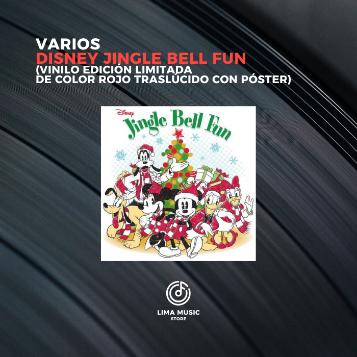 Vinilo edición limitada Jingle Bell Fun — rojo translúcido con póster, villancicos Disney para una Navidad llena de magia. Disponible en stock en Lima Music Store.