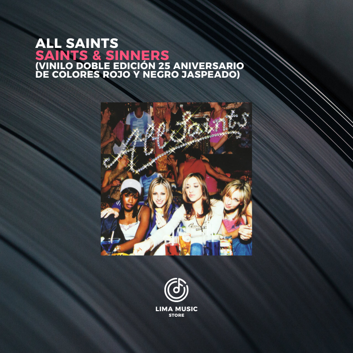 Saints & Sinners de All Saints en vinilo doble rojo & negro jaspeado, edición 25 aniversario con remixes clásicos incluidos.