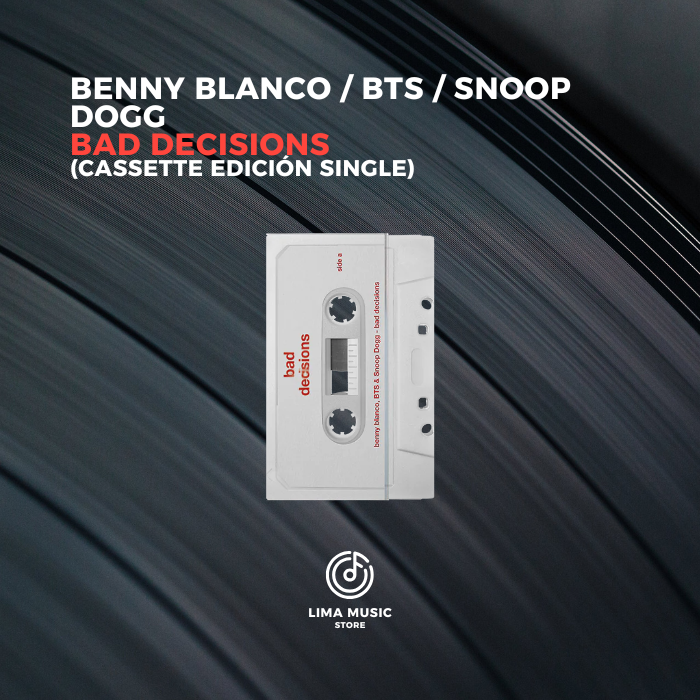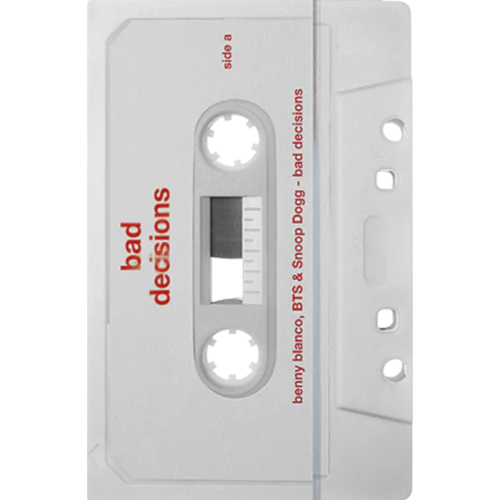 Una colaboración global llena de energía, actitud y ritmo: Bad Decisions reúne al productor Benny Blanco, la superestrella internacional BTS y la leyenda del rap Snoop Dogg en una pista que mezcla pop, hip-hop y un pulso irresistible. Esta edición en cassette single limitada amplifica la experiencia física del formato analógico: Introducir la cinta, escuchar el clic, dejarse llevar por el sonido directo.