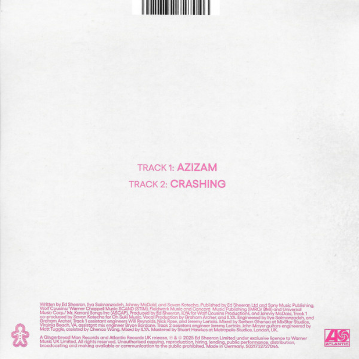 CD single de Azizam de Ed Sheeran, el primer adelanto de su nuevo álbum Play, con lado B exclusivo Crashing, ya disponible en stock.
