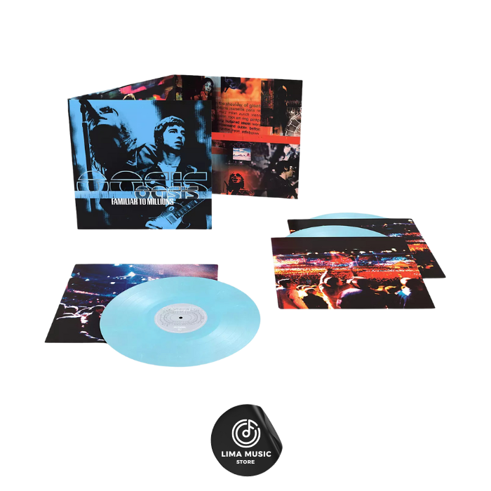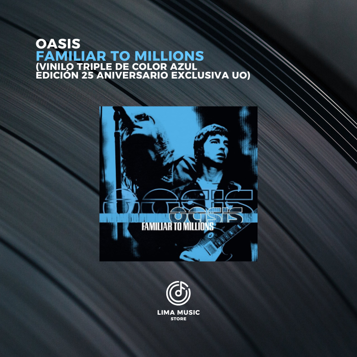 Edición limitada en vinilo triple de color azul del álbum Familiar to Millions de Oasis — una celebración del 25.º aniversario con 18 temas en vivo y una presentación premium para coleccionistas. Disponible para compra anticipada en Lima Music Store a partir del 14 de noviembre de 2025.