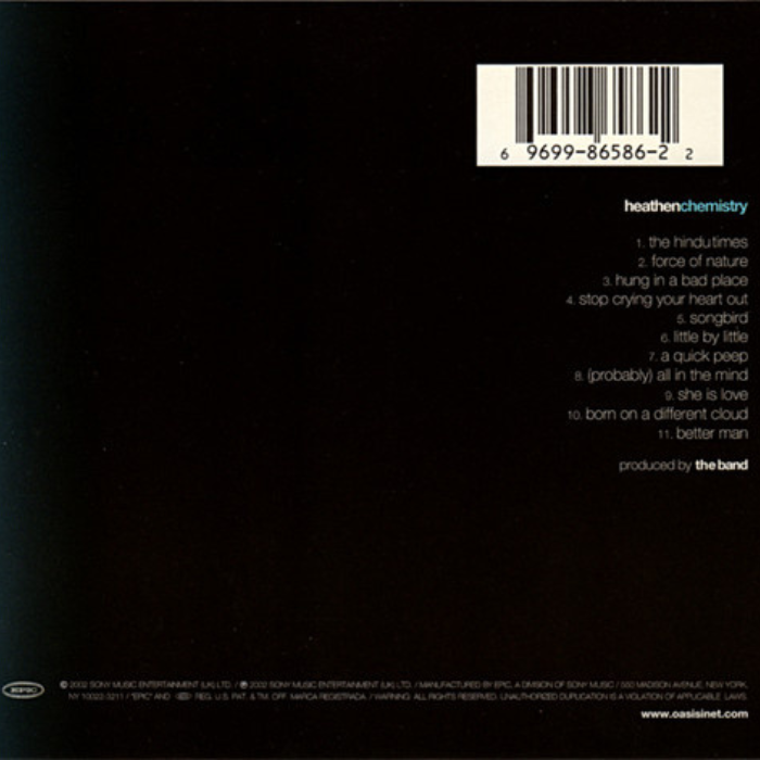 CD del álbum Heathen Chemistry de Oasis, con clásicos como Stop Crying Your Heart Out y Little by Little. Ya disponible en Lima Music Store.