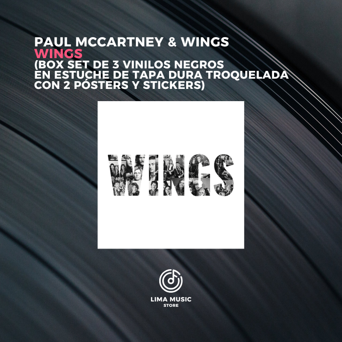 WINGS es la antología definitiva de la banda de Paul McCartney que definió el sonido de los 70. Este box set limitado de 3 LPs negros de 180 g reúne 32 éxitos internacionales atemporales, incluidos clásicos como Band on the Run, Live and Let Die, Jet y Let ’Em In; canciones que McCartney sigue interpretando en vivo y que han marcado generaciones.